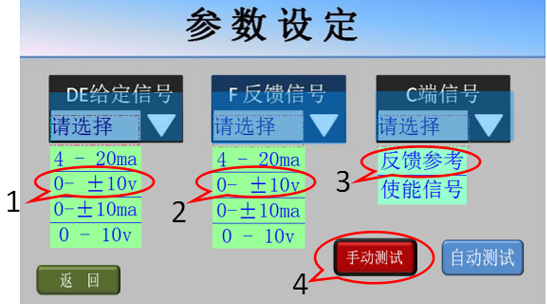 7、手動測試基本正常后,點擊屏幕左下方的返回鍵,返回參數(shù)設(shè)定畫面;