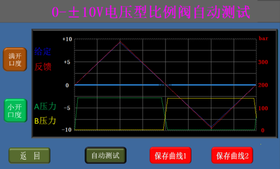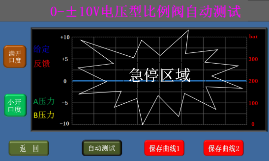 * 選擇小開口度后點擊“自動測試”可使比例閥從0開口度逐漸增加到+20%開口度,再逐漸減少到-20%,然后逐漸增加到0開口度;