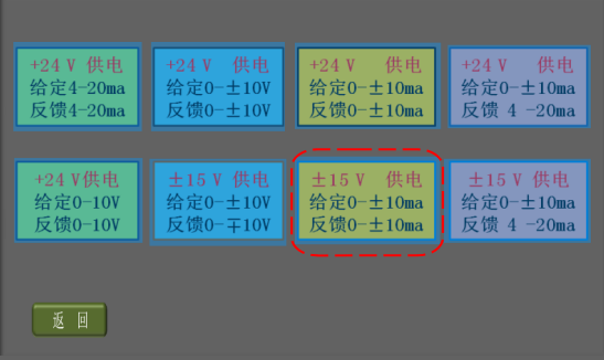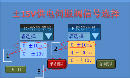 7、手動測試基本正常后,點擊屏幕左下方的返回鍵,返回伺服閥信號選擇畫面;